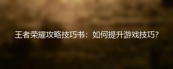 以上就是小编为大家带来的王者荣耀攻略技巧书,希望这些攻略技巧能够帮助您提升游戏技巧,取得更好的成绩!快来和小伙伴一起征战王者荣耀的战场吧!