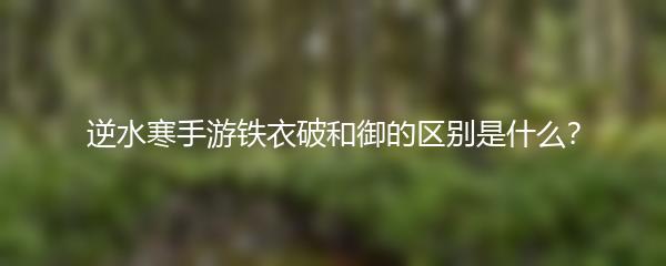 逆水寒手游是一款热门的MMORPG游戏,其中有两种特殊技能——铁衣破和御。那么这两种技能有什么区别呢?下面让我们来一起了解: