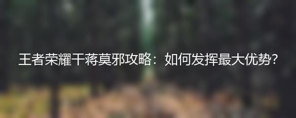 以上就是王者荣耀干蒋莫邪攻略的内容。希望通过这篇攻略,你能够更好地发挥蒋莫邪的优势,在游戏中取得胜利。
