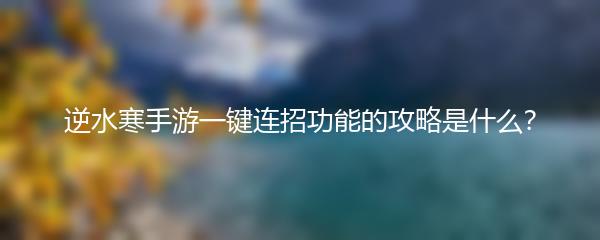 以上就是小编为大家带来的逆水寒手游一键连招功能攻略。通过合理设置和使用一键连招,可以让玩家在战斗中更加得心应手,取得更多的胜利。希望这篇攻略对各位玩家有所帮助!