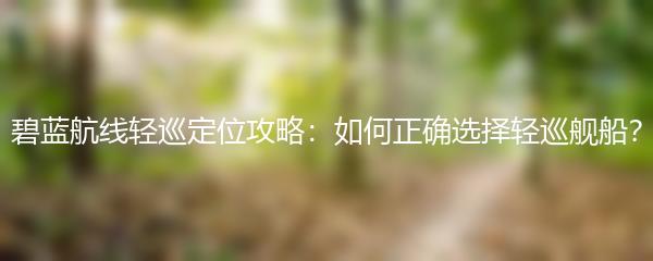 碧蓝航线轻巡定位攻略:如何正确选择轻巡舰船?