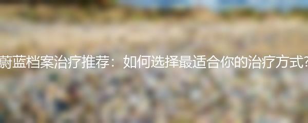 蔚蓝档案治疗是一种非常受欢迎的治疗方式,但是面对众多的选择,你是否感到困惑呢?不用担心,本文将为大家介绍蔚蓝档案治疗的不同方式,帮助你选择最适合自己的治疗方式。