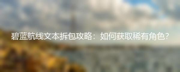 碧蓝航线文本拆包攻略:如何获取稀有角色?