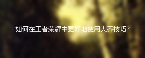 如何在王者荣耀中更好地使用大乔技巧?