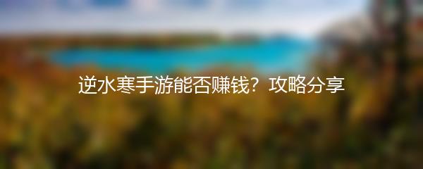 以上就是小编为大家带来的《逆水寒手游能否赚钱?攻略分享》。希望本文对你在逆水寒手游中取得更好的成绩有所帮助。祝你在游戏中取得巨大的成功!