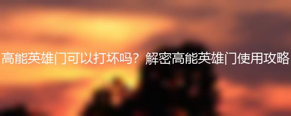 有关高能英雄门是否可以打坏的问题,让我们一起来解密一下。高能英雄门是一种高科技产品,具有高度的安全性和耐用性。下面给大家分享一些使用攻略: