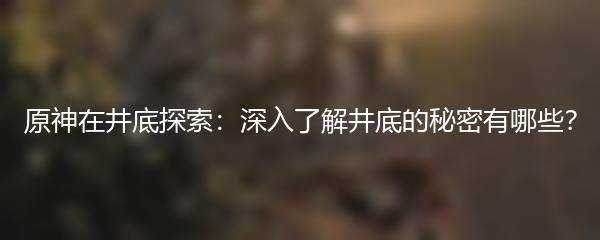 原神在井底探索:深入了解井底的秘密有哪些?