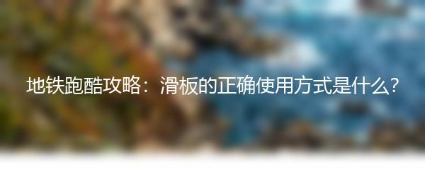 地铁跑酷攻略:滑板的正确使用方式是什么?