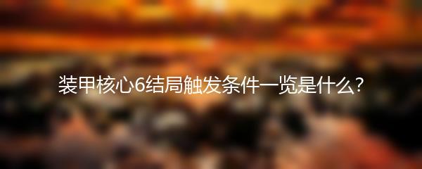 以上就是小编为大家带来的装甲核心6结局触发条件一览的攻略文章。希望对喜爱这款游戏的玩家们有所帮助,祝你们在游戏中获得完美结局!