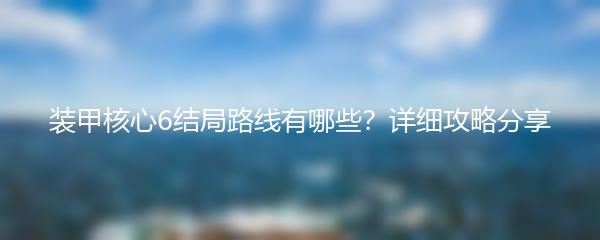 以上就是小编为大家带来的装甲核心6结局路线的攻略介绍。每条结局路线都有不同的挑战和故事情节,玩家可以根据自己的喜好选择不同的路径进行游戏。希望这份攻略对玩家们有所帮助,祝各位在游戏中取得好的结局!