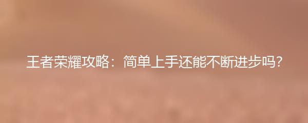 王者荣耀攻略:简单上手还能不断进步吗?