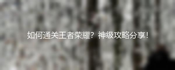 以上就是小编为大家带来的如何通关王者荣耀的神级攻略,希望对各位玩家有所帮助。在游戏中,不仅要有技巧和经验,更要有良好的团队合作和沟通能力。加油,成为真正的王者吧!