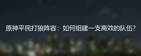 以上就是小编为大家带来的《原神平民打狼阵容:如何组建一支高效的队伍?》的攻略文章。希望以上的经验和技巧对大家在与狼的战斗中有所帮助,祝各位玩家好运!