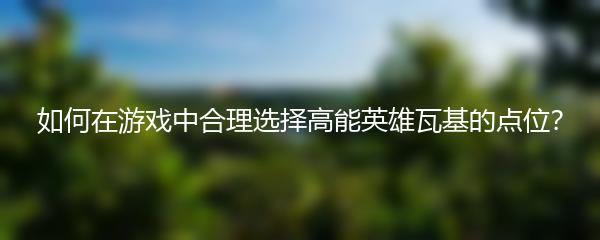 如何在游戏中合理选择高能英雄瓦基的点位?