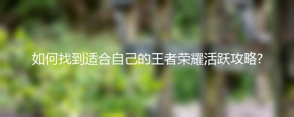 以上就是小编为大家带来的如何找到适合自己的王者荣耀活跃攻略的方法。希望这些技巧能够帮助到王者荣耀的玩家们,提升自己的游戏水平,取得更好的战绩。