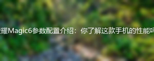 荣耀Magic6参数配置介绍:你了解这款手机的性能吗?