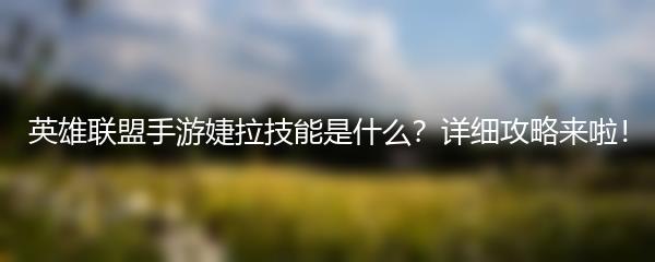 以上就是小编为大家带来的《英雄联盟手游婕拉技能是什么?详细攻略来啦!》希望对大家有所帮助。玩得开心,祝大家游戏愉快!
