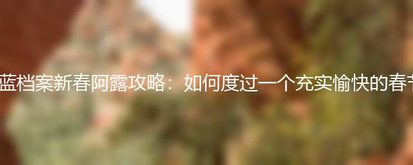 蔚蓝档案在春节期间会推出一系列新春活动,玩家可以通过参与这些活动来获得丰厚的奖励。阿露作为游戏中的重要角色,必然也会有自己的新春活动,玩家可以通过完成任务、参加活动等方式与阿露互动,并享受活动带来的乐趣。