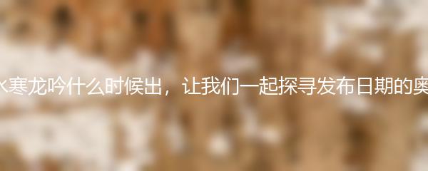 以上就是小编为大家带来的逆水寒龙吟什么时候出的探寻发布日期的奥秘。无论正式发布日期是什么时候,相信新资料片一定会为玩家带来更多的惊喜和乐趣!