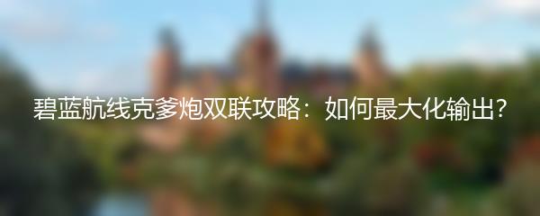 碧蓝航线克爹炮双联攻略:如何最大化输出?