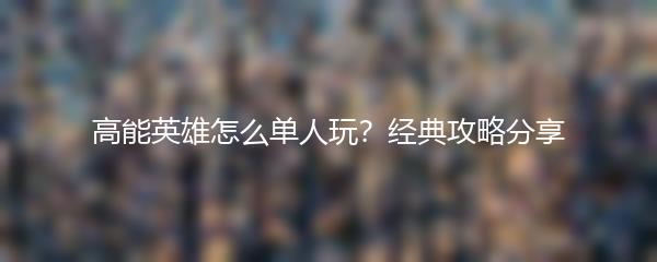 以上就是小编为大家带来的"高能英雄怎么单人玩?经典攻略分享"。希望这些攻略对于希望单人玩转高能英雄的玩家有所帮助!快来挑战自己,成为一名强大的高能英雄玩家吧!
