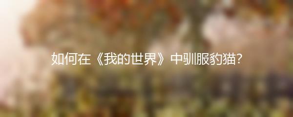 以上就是小编为大家带来的《如何在《我的世界》中驯服豹猫?》。希望对大家有所帮助,快去挑战吧!