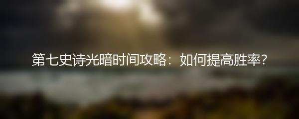 第七史诗是一款备受玩家喜爱的卡牌游戏,其中光暗时间是游戏中的一个重要元素。你想知道如何在光暗时间中提高自己的胜率吗?下面是一些攻略供你参考:
