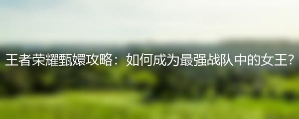 王者荣耀甄嬛攻略:如何成为最强战队中的女王?