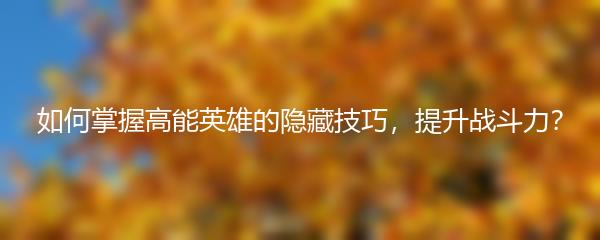 高能英雄是游戏中极具威力的角色之一,他们能够在战斗中发挥出强大的破坏力和控制能力。然而,要想成为一名出色的高能英雄玩家并不仅仅需要懂得技能的使用,还需要掌握一些隐藏技巧来提升自己的战斗力。本文将为您介绍一些关于高能英雄的隐藏技巧,帮助您在游戏中取得更优秀的成绩。