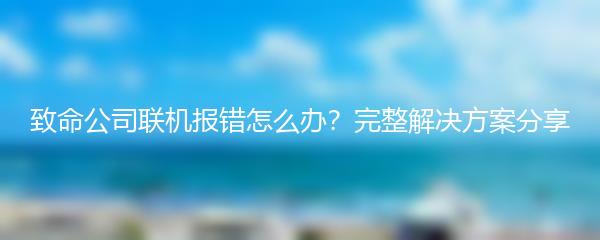 致命公司联机报错怎么办?完整解决方案分享