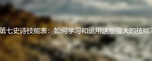 第七史诗技能表:如何学习和运用这些强大的技能?