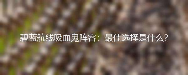 碧蓝航线是一款备受喜爱的手机游戏,其中吸血鬼是一个强大的角色。但是在组建阵容时,选择合适的吸血鬼非常重要。那么,碧蓝航线中的吸血鬼阵容最佳选择是什么呢?下面来为大家介绍。