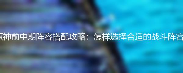 以上就是关于原神前中期阵容搭配的一些建议。选择合适的阵容对于玩家在前中期的战斗中起到至关重要的作用。希望以上的建议能帮助到各位玩家,让大家可以更好地享受原神的乐趣!
