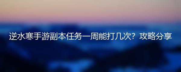 以上就是小编为大家带来的逆水寒手游副本任务一周能打几次的攻略。通过合理利用副本任务次数和提升战斗能力,相信大家可以在游戏中取得不错的进展和收获丰厚的奖励。