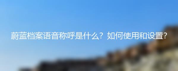 蔚蓝档案语音称呼是什么?如何使用和设置?