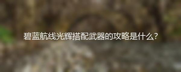 以上是关于如何搭配光辉的武器的攻略,希望对你在碧蓝航线中的游戏体验有所帮助。
