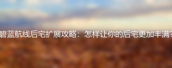 通过以上几个攻略方法,相信大家能够更好地扩展碧蓝航线的后宅空间,让后宅更加丰满,展现出自己的个性和品味。