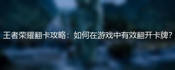 王者荣耀翻卡攻略是一个活跃的话题,很多玩家会分享自己的经验和技巧。要想在游戏中更好地翻开卡牌,可以关注一些翻卡攻略,从中获取一些有用的建议。