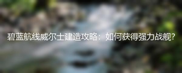 碧蓝航线威尔士建造,作为游戏中的一个重要环节,为玩家提供了获得强力战舰的机会。想知道如何在威尔士建造中获得更多的战舰吗?本文将为您详细介绍碧蓝航线威尔士建造的攻略。
