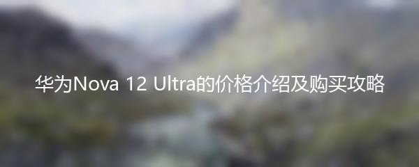 华为Nova 12 Ultra是一款备受瞩目的智能手机,拥有出色的性能和令人惊艳的外观设计。对于想要购买这款手机的人来说,了解其价格和购买攻略是非常重要的。本文将为您提供关于华为Nova 12 Ultra价格的介绍,并分享一些购买攻略。