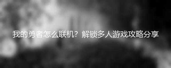 我的勇者怎么联机?解锁多人游戏攻略分享