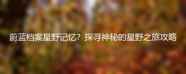 小编为您带来的探寻神秘的星野之旅攻略,让您畅游蔚蓝档案,感受星野记忆。
