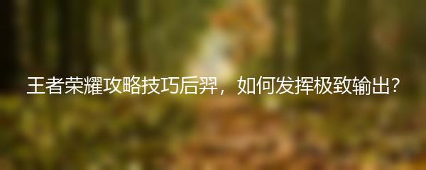 王者荣耀是一款热门的手机游戏,而后羿作为射手英雄,拥有强大的输出能力,下面为大家分享一些后羿的攻略技巧,帮助你发挥极致输出: