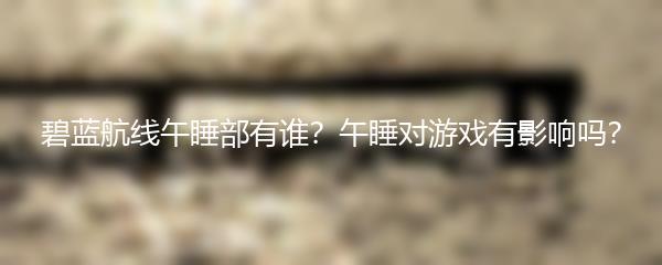 以上就是小编为大家带来的《碧蓝航线午睡部有谁?午睡对游戏有影响吗?》的攻略文章。希望对大家在游戏中的决策和玩法选择有所帮助。