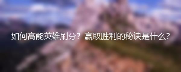 如何高能英雄刷分?赢取胜利的秘诀是什么?