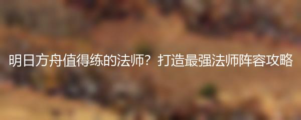 明日方舟作为一款热门的策略游戏,拥有众多角色可供选择。其中,法师作为输出型职业,在战斗中发挥着重要的作用。那么,明日方舟中到底有哪些法师值得练习呢?本篇攻略将为您详细介绍如何打造最强法师阵容。
