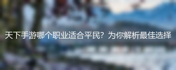 以上就是小编为大家带来的《天下手游哪个职业适合平民?为你解析最佳选择》的形式进行结尾。