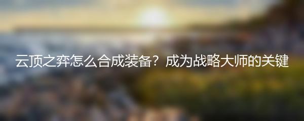 以上就是小编为大家带来的云顶之弈怎么合成装备的攻略。希望这些技巧能够帮助你成为一名真正的战略大师,取得更多的胜利!