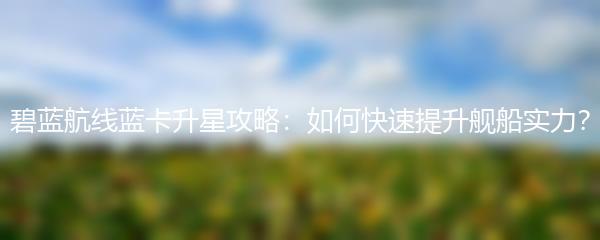 碧蓝航线蓝卡升星攻略:如何快速提升舰船实力?