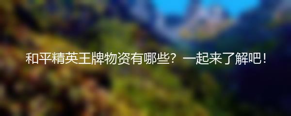 和平精英是一款风靡全球的大逃杀游戏,玩家们需要在游戏中寻找各种资源来提升自己的战斗能力。其中,王牌物资是非常重要的资源之一。那么,和平精英王牌物资有哪些呢?让我们一起来了解吧!